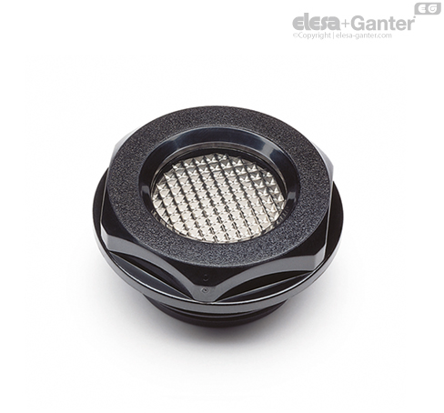 Tehnopolimer transparent pe bază de poliamidă (PA-T/AR). Fereastra constă dintr-o serie continuă de prisme care oferă o citire clară și imediată a nivelului uleiului conținut în rezervor.