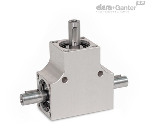 Cutiile de angrenaj conic GN 3971 pot transmite un cuplu ridicat în pofida dimensiunilor lor foarte compacte. Acestea pot fi utilizate cu ușurință pentru o multitudine de aplicații, cum ar fi reglajele de înălțime sau modificarea direcției de rotație a arborelui.