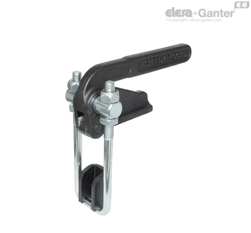 Încuietoare cu cârlig în formă de „U” a clemelor cu acționare rapidă GN 852.1 de tip cârlig vertical este reglabilă în intervalul de reglare.