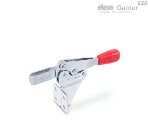 Clemele cu acționare rapidă cu acțiune orizontală în versiunea cu braț bifurcat cu două șaibe (tip MF) pot găzdui un șurub de strângere specific aplicației. Pentru tipul MFC este inclus un tampon de strângere cu cap din cauciuc (neopren).