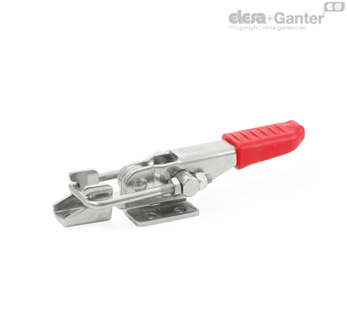 În poziția de prindere, încuietoare cu cârlig în formă de „U” cu brațul de strângere este paralel cu planul mânerului de acționare.