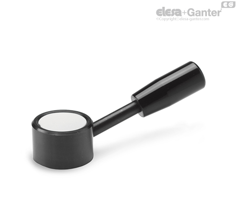 Manetele de control GN 750 cu canal de pană cu butuc/cheie paralelă, montate axial cu șaibă pentru șurub cu cap înecat GN 184 , cu o canelură inelară pentru atașarea pinilor pentru a limita unghiul de rotație.