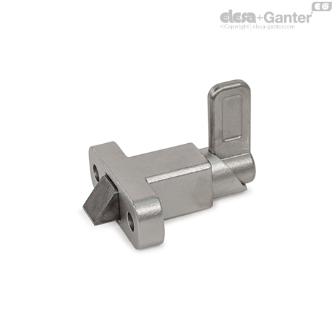 Încuietoarele cu arc GN 724.2 au pinul plungerului cu secțiune transversală pătrată, o suprafață de blocare pe o parte și un șanfren pe cealaltă parte. Când obiectul care trebuie securizat se deplasează spre șanfren, pinul plungerului este împins înapoi în ghidaj, permițând canelurilor și marginilor să treacă peste pin. Pinul plungerului se fixează automat în loc când este mutat către suprafața de fixare. Blocarea poate fi eliberată prin tragerea brațului de blocare.