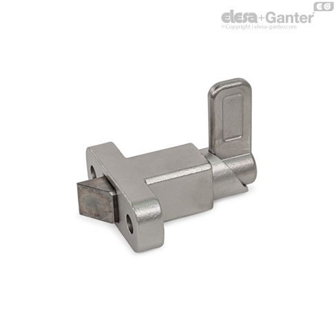 Încuietoarele cu arc GN 724.2 au pinul plungerului cu secțiune transversală pătrată, o suprafață de blocare pe o parte și un șanfren pe cealaltă parte. Când obiectul care trebuie securizat se deplasează spre șanfren, pinul plungerului este împins înapoi în ghidaj, permițând canelurilor și marginilor să treacă peste pin. Pinul plungerului se fixează automat în loc când este mutat către suprafața de fixare. Blocarea poate fi eliberată prin tragerea brațului de blocare.