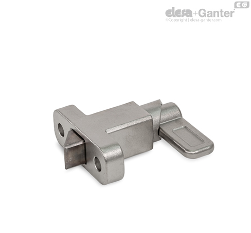 Încuietoarele cu arc GN 724.2 au pinul plungerului cu secțiune transversală pătrată, o suprafață de blocare pe o parte și un șanfren pe cealaltă parte. Când obiectul care trebuie securizat se deplasează spre șanfren, pinul plungerului este împins înapoi în ghidaj, permițând canelurilor și marginilor să treacă peste pin. Pinul plungerului se fixează automat în loc când este mutat către suprafața de fixare. Blocarea poate fi eliberată prin tragerea brațului de blocare.