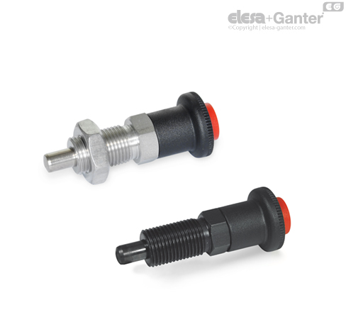 Indexoarele cu plunger GN 414 cu funcție de siguranță sunt utilizate atunci când trebuie prevenită retracția involuntară a pinului plungerului. Plungerul avansat este mai întâi blocat și poate fi deblocat pentru tragere numai prin exercitarea unei presiuni axiale asupra butonului roșu de siguranță