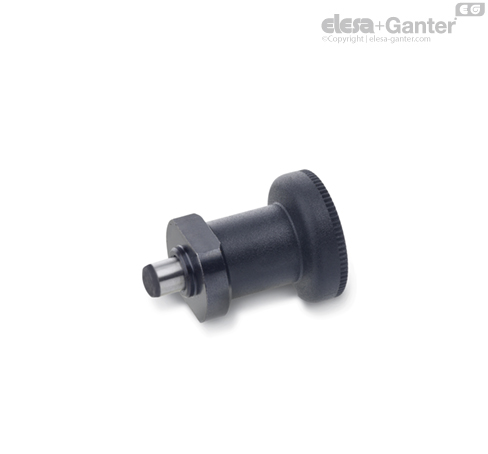 Indexoarele cu plunger GN 607.5 se utilizează în situațiile când pinul de indexare nu poate ieși temporar în afară. După extragere, butonul este rotit la 90°.