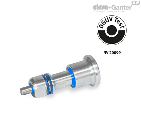 Identificare FH: design igienic pe partea butonului (igienă frontală): Indexoarele GN 8170 sunt certificate conform directivelor de testare DGUV și respectă cerințele igienice pe partea butonului (igienice frontal). Dispozitivele de ștergere dintre buton și ghidaj, precum și inelul de etanșare dintre ghidaj și carcasă mențin mecanismul de blocare etanș pe partea butonului. În același timp, calitatea superioară a suprafeței și montarea fără spații libere previn formarea murdăriei și facilitează curățarea.