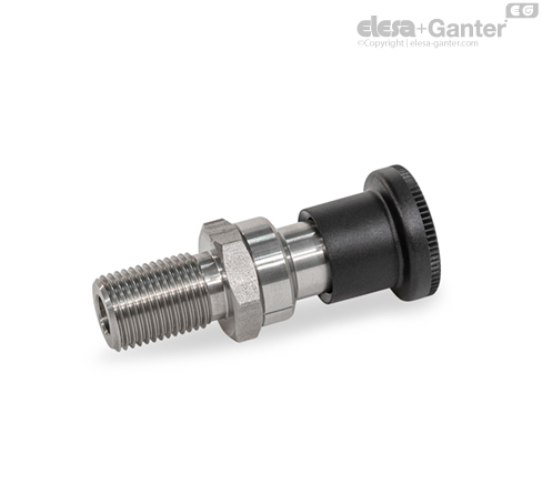 Indexoarele cu plunger GN 824 au pinul plungerului cu secțiune transversală pătrată, o suprafață de blocare pe o parte și un șanfren pe cealaltă parte. Când obiectul care trebuie securizat se deplasează spre șanfren, pinul plungerului este împins înapoi în ghidaj, permițând canelurilor și marginilor să treacă peste pin. Pinul plungerului se fixează automat în loc când este mutat către suprafața de fixare. Blocarea poate fi eliberată prin tragerea butonului.