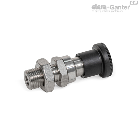 Indexoarele cu plunger GN 824 au pinul plungerului cu secțiune transversală pătrată, o suprafață de blocare pe o parte și un șanfren pe cealaltă parte. Când obiectul care trebuie securizat se deplasează spre șanfren, pinul plungerului este împins înapoi în ghidaj, permițând canelurilor și marginilor să treacă peste pin. Pinul plungerului se fixează automat în loc când este mutat către suprafața de fixare. Blocarea poate fi eliberată prin tragerea butonului.