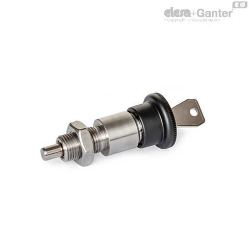 Indexoarele cu plunger din oțel inoxidabil GN 814 sunt utilizate pentru aplicații în care nu se permite funcționarea neautorizată. Tipurile A și AK fixează pinul plungerului în poziție frontală după blocare. Tipurile E și EK fixează suplimentar pinul plungerului în poziția din spate dacă nu iese temporar în afară.