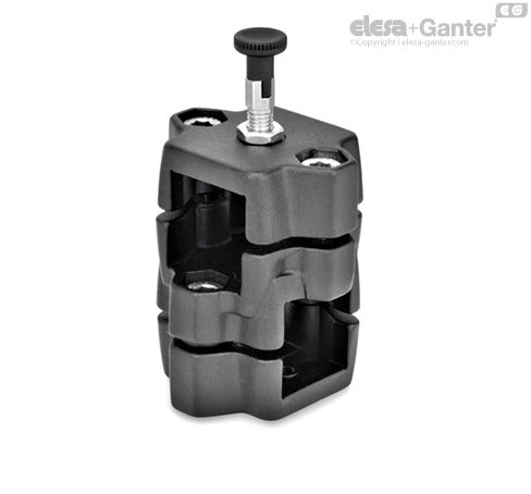 Pentru prindere rapidă fără unelte, șuruburile din locațiile z, pot fi înlocuite cu mânere ajustabile GN 911 prezentate în tabel ca accesorii. Bucșele de centrare din orificiile de trecere elimină jocul axial dintre cele două segmente ale conectorilor.