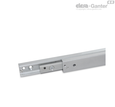 Glisierele liniare telescopice GN 2410 cuprind două șine cu bile pentru glisiere liniare, cuplate pe ghidaje. Acestea sunt utilizate, de exemplu, la manipularea materialelor sau aplicații automatizate, ori în execuții de montaje, pentru realizarea mișcării de glisare în direcție liniară, când sunt prevăzute extensii mari pe structuri de înălțime mică a șinei.
