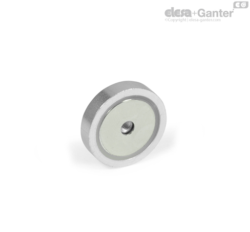 Magneții de retenție GN 50.5 sunt montați intr-o carcasă din oțel, un inel de plastic și un capac de plastic într-un sistem care protejează și consolidează magnetul pentru transmisia optimă a fluxului magnetic pe suprafața magnetică.