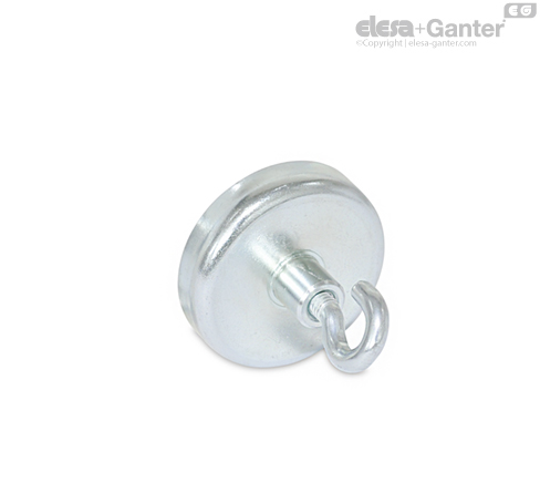 Magneții de retenție GN 50.6 sunt montați cu carcasa din oțel și inelul de plastic într-un sistem care protejează și consolidează magnetul pentru transmisia optimă a fluxului magnetic pe suprafața magnetică.