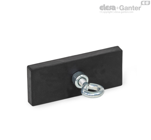 Magneții de retenție GN 57.10 cu manta de cauciuc formează un sistem împreună cu piesa din oțel, care protejează și întărește magnetul, concentrând în mod optim fluxul magnetic pe suprafața magnetică cauciucată.