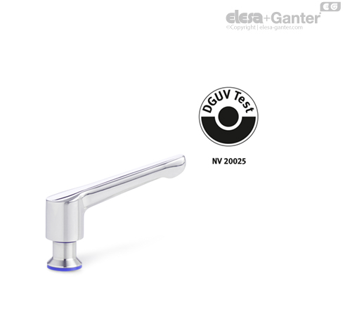 Mânerele ajustabile GN 305 cu mâner solid din oțel inoxidabil respectă principiile de testare DGUV, fiind potrivite pentru utilizarea în zone aseptice.
