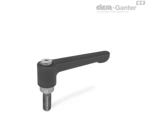Mânerele ajustabile GN 302.1 au un mâner drept, neînclinat, paralel cu spațiul de strângere.