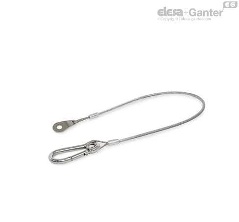 Cablul de retenție este conectat ferm pe o parte la o carabină GN 5299. Cu tipul M, inelul elastic este strâns lejer cu cablul de retenție.