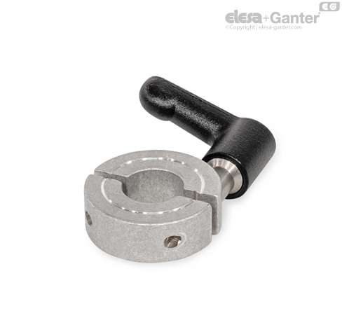 Colierele de prindere secționate GN 707.4 sunt utilizate atunci când montajul axial nu este posibil. Acestea pot fi fixate ușor și rapid fără unelte, reducând înălțimea canalului cu ajutorul unui mâner ajustabil. De exemplu, acest lucru le permite să fie utilizate ca un opritor care trebuie reglat frecvent.