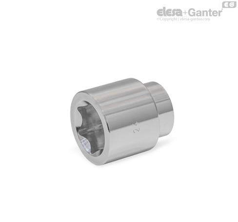 Mufele GN 3124 sunt utilizate la instalarea pieselor standard cu design igienic, prezentate în tabel. În combinație cu materialul de aluminiu utilizat, geometria hexagonală rotunjită a cheilor plate transferă cuplul către capul șurubului fără a provoca deteriorări.