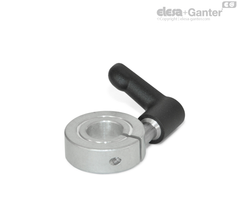 Colierele pentru axuri semi-secționate GN 706.4 pot fi strânse sigur și simplu prin reducerea înălțimii canalului, prin folosirea unui mâner ajustabil și astfel ele acționează, de exemplu, ca un opritor.