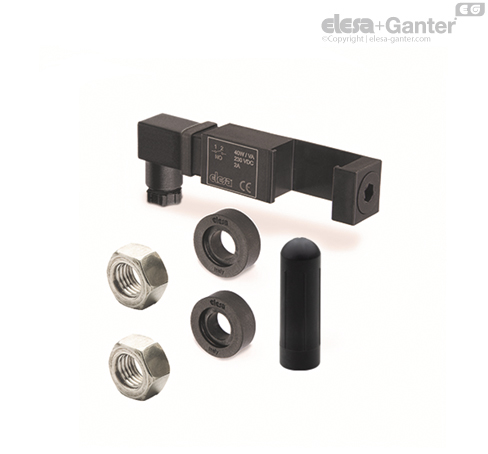 - Conector DIN 43650 din tehnopolimer pe bază de poliamidă armată cu fibră de sticlă (PA), culoare neagră.