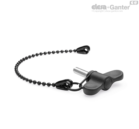 Inelul elastic de fixare, amplasat în canalul piuliței fluture, se poate roti liber. Inelul spiralat conectează inelul elastic de fixare la lanț.