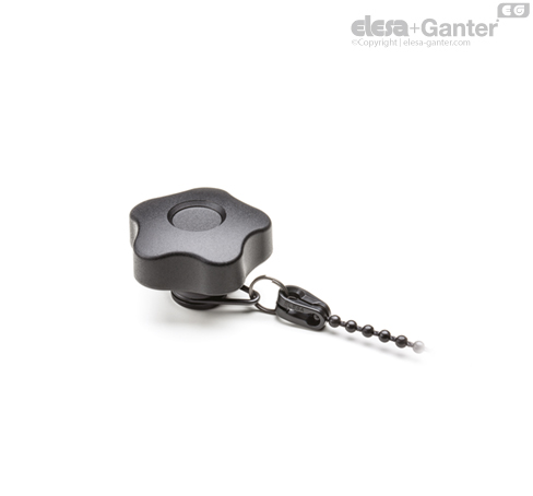 Cablu cu bile și capete de cuplare din tehnopolimer pe bază de rășină acetală (POM), de culoare neagră.