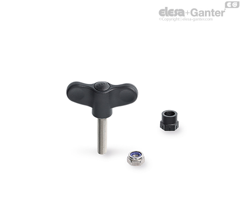 Piuliță fluture de reglare din SUPER-tehnopolimer pe bază de poliamidă (PA), de culoare neagră.