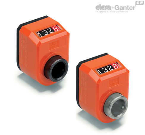 Indicator de rotație cu patru cifre. Cifrele de pe rolele roșii arată valorile zecimale. O scară gradată suplimentară, lângă ultima cifră zecimală, oferă o acuratețe suplimentară a citirii.