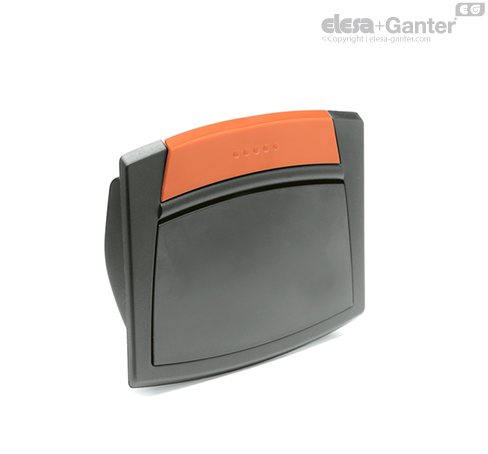 EPR-F-SH: mâner cu clapetă din tehnopolimer de culoare gri-negru, finisaj mat, arc de revenire din oțel inoxidabil.