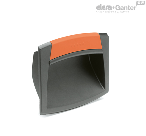 EPR-F-SH: mâner cu clapetă din tehnopolimer de culoare gri-negru, finisaj mat, arc de revenire din oțel inoxidabil.