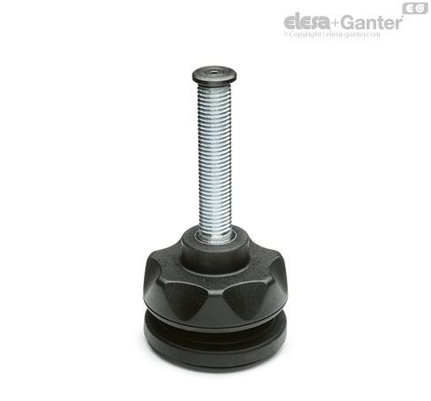 Tijă filetată din oțel zincat. Buton de reglare din tehnopolimer tip ELK.