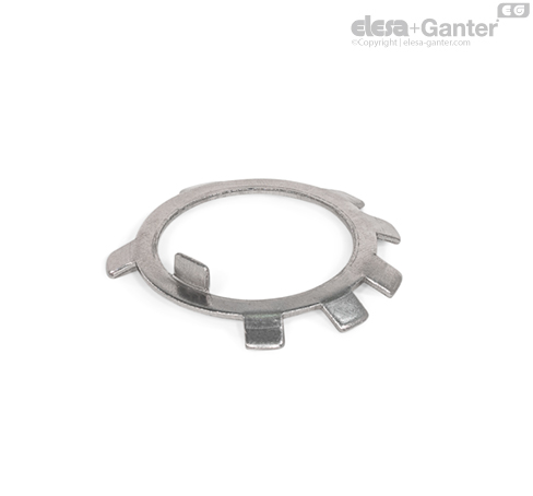 Plăcile de blocare DIN 70952 securizează piulițele canelate DIN 70852 cu o conexiune pozitivă pentru a preveni slăbirea sau reglarea nedorită, cum ar fi atunci când sunt utilizate pentru a seta jocul axial al unui lagăr.