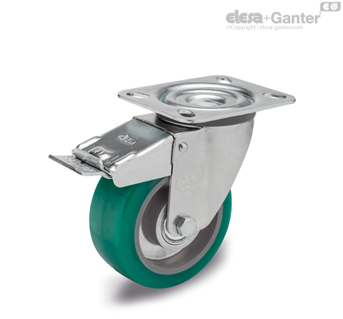 Frâna totală care blochează roata și rotirea suportului.
