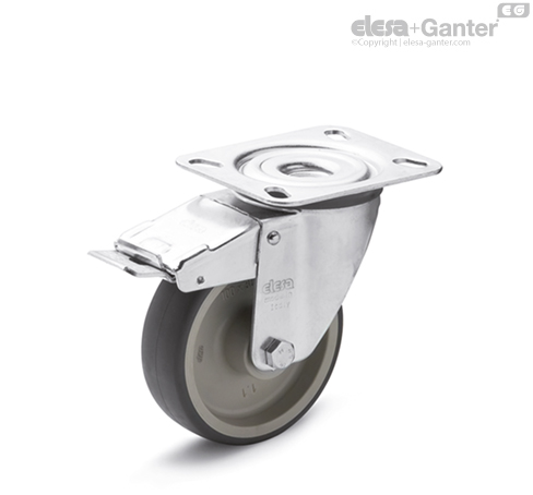 Roată din material termoplastic gri anti-urme, duritate Shore A 85.