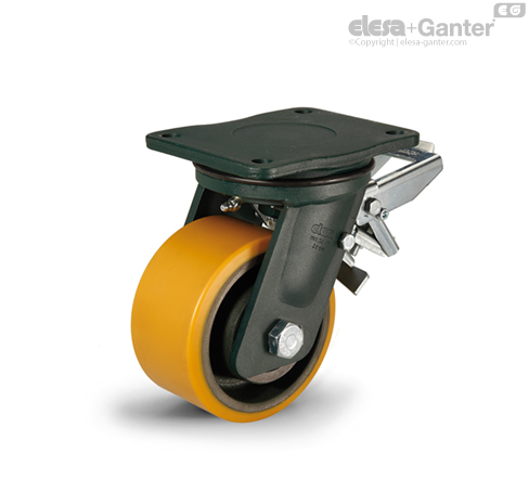 Potrivit pentru aplicații industriale grele și condiții severe de utilizare, cum ar fi impactul și vitezele mari. Roata din poliuretan montat pe matriță asigură o excelentă rezistență la rulare și elasticitate, rezistență ridicată la uzură și rupere. Pentru informații suplimentare consultați RE.F4.
