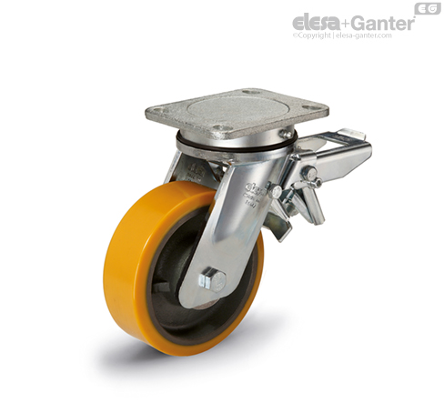 Potrivit pentru aplicații industriale grele și condiții severe de utilizare, cum ar fi impactul și vitezele mari. Roata din poliuretan turnat asigură o excelentă rezistență la rulare și elasticitate, rezistență ridicată la uzură și rupere. Pentru informații suplimentare consultați RE.F4.