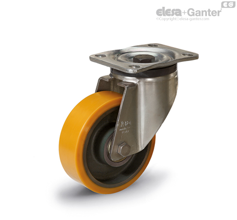 Potrivit pentru aplicații industriale grele. Roata din poliuretan turnat asigură o excelentă rezistență la rulare și elasticitate, rezistență ridicată la uzură și rupere. Pentru informații suplimentare, a se vedea RE.F4.