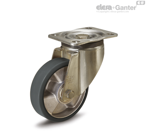 Poliuretanul special cu rezistivitate electrică <10 9 Ω previne acumularea de sarcină electrostatică. Prin urmare, roțile RE.F5-H-ESD sunt potrivite pentru aplicații în "ZONE PROTEJATE ESD", unde toate componentele sensibile la descărcările electrostatice trebuie tratate cu un risc minim de deteriorare.