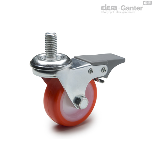 Frâna totală care blochează rotația roții și suportul din tehnopolimer.