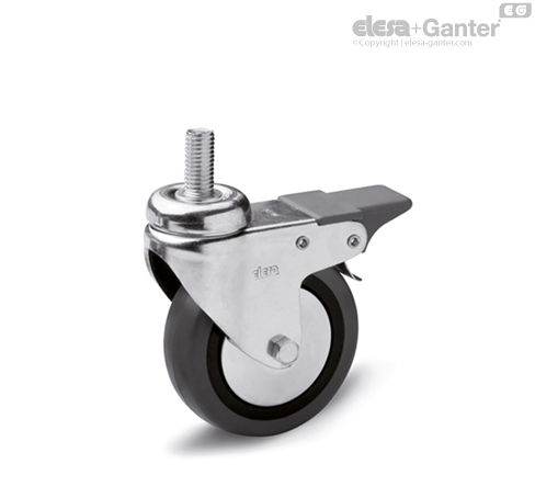 Frâna totală care blochează rotația roții și suportul din tehnopolimer.
